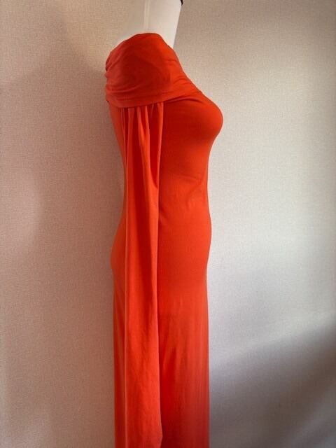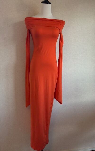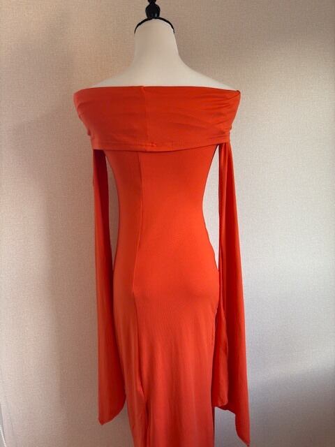 オレンジ★華やかスリットスリーブ!ロング丈ワンピ!