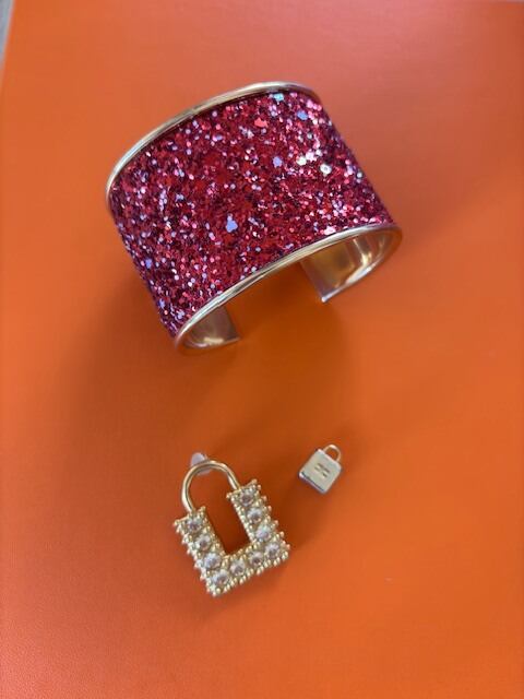 GOLD×RED★大振り華やかバングル!きらきらピアス!チャームセット!★