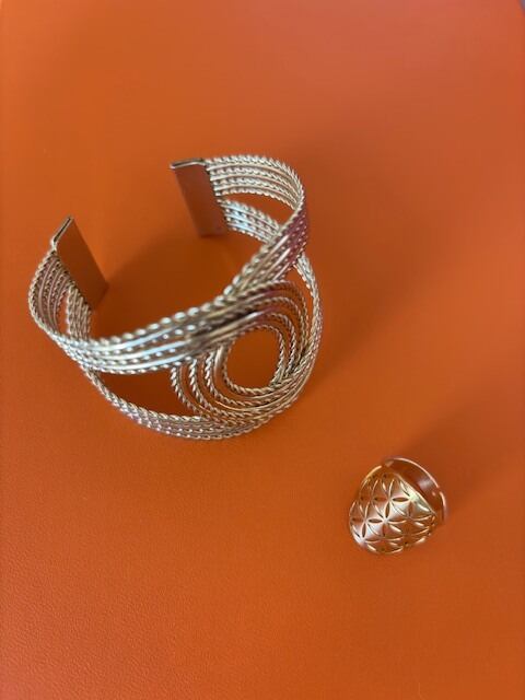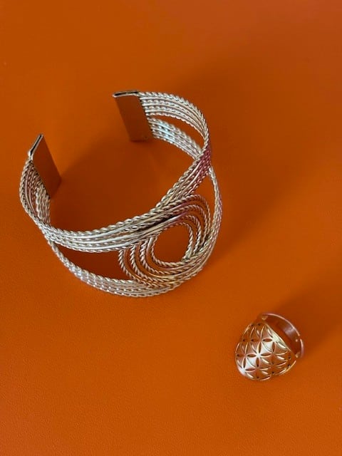 GOLD★大振り華やかバングル!フラワーオブライフリング!セット!★
