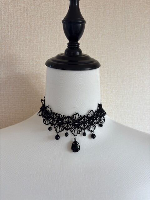 石付きのレースネックレスが、コーデを華やかにしてくれます。