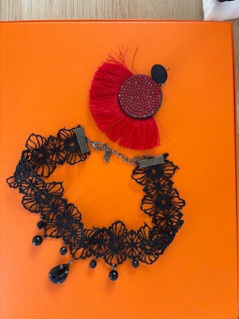 BLACKレースネックレス★REDフリンジピアス!!