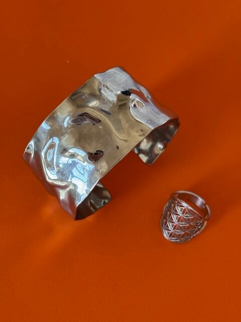 SILVER★大振り華やかバングル!フラワーオブライフリング!セット!★