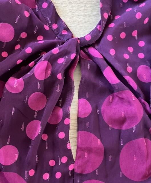 ボルドーの生地の中に大きさの違うドット柄と、