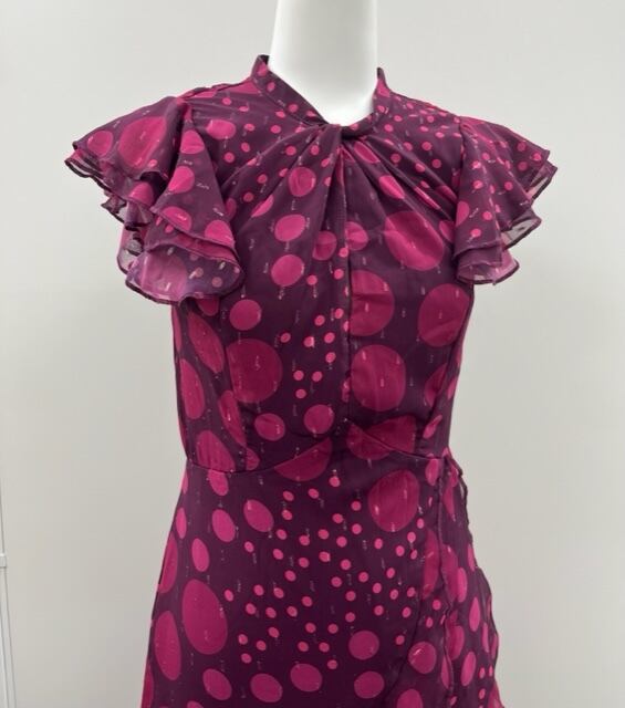 ボルドードットワンピース!フリル使いのフェミニンなデザイン!