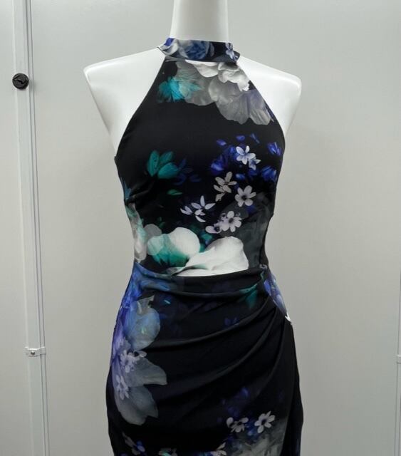 新品★黒ベースに大きめの花がプリントされたホルターネック!アメリカンスリーブワンピ!