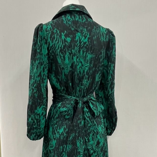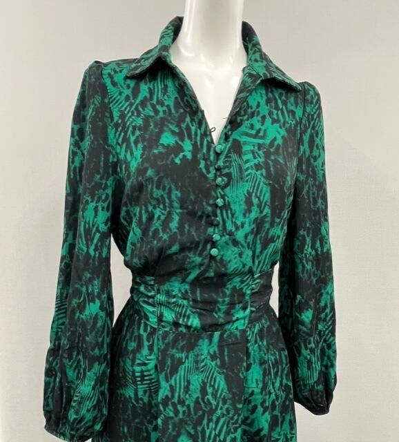 グリーンベースの豹柄ワンピースです