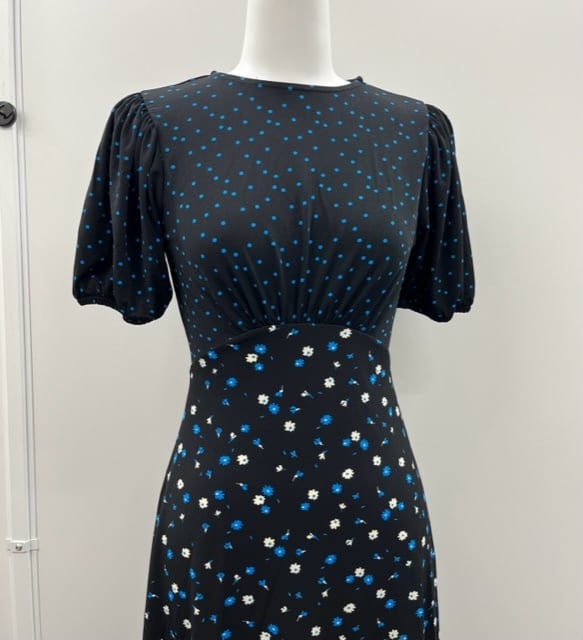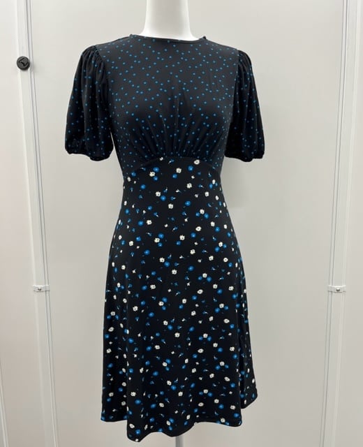新品!ストレッチ素材!ブラックベースにドット×フラワープリントワンピース!