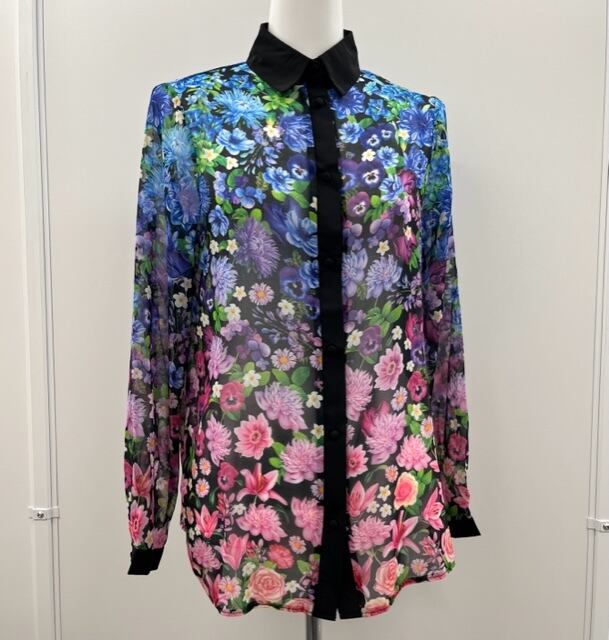 グラデーションのフラワープリントがとっても華やかなシャツです