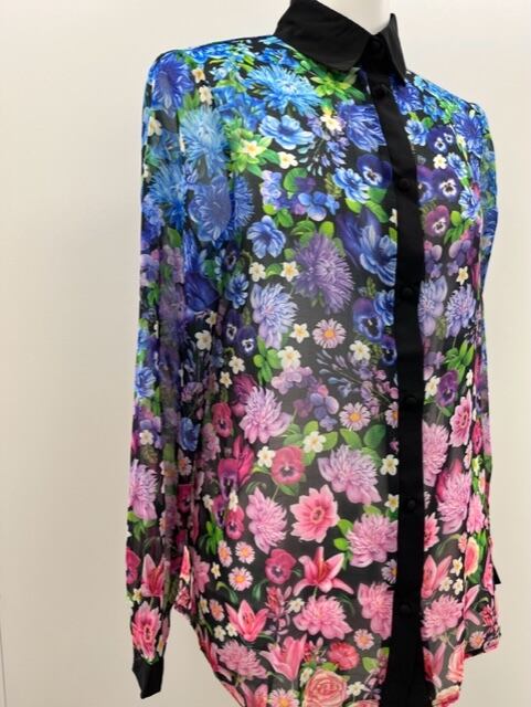 グラデーションフラワープリント!ブラックベースでシャープで華やかなシャツ!