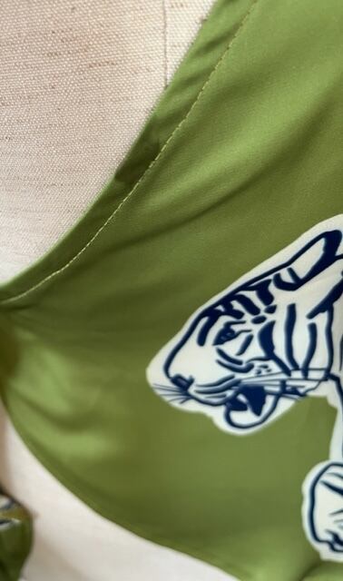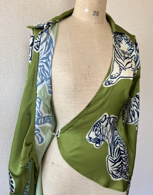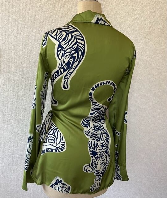 カーキベースにブルー系のタイガープリントがとっても珍しいシャツです