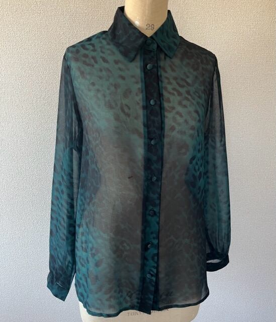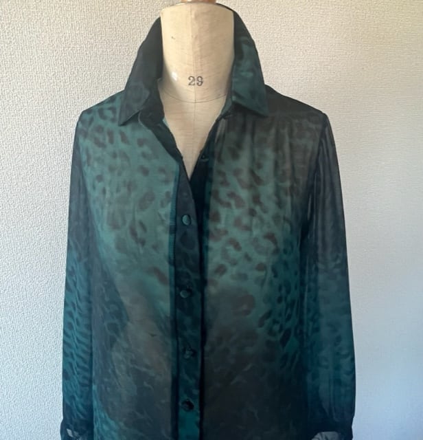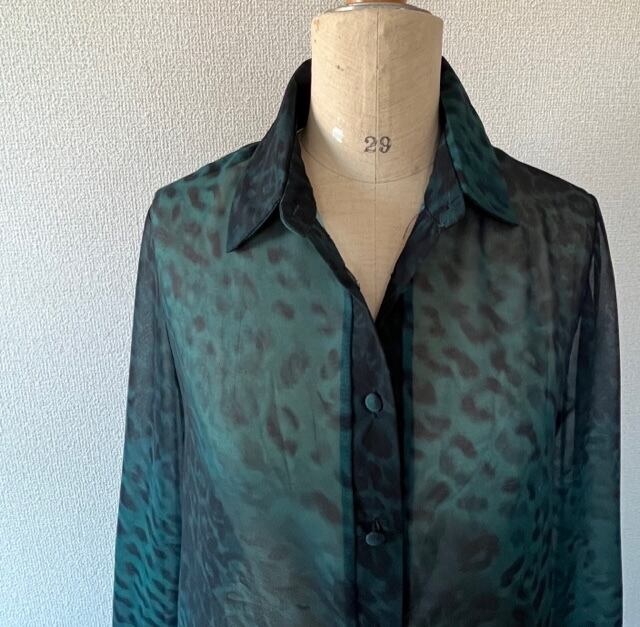 グリーンレオパードプリントシャツ!シフォン!