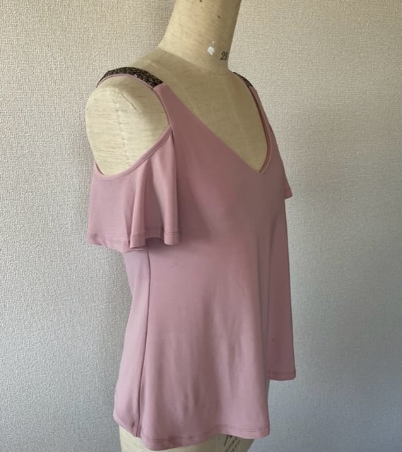 くすみピンク!Vネックカットソー!シルバービジューストラップ!
