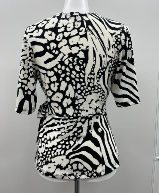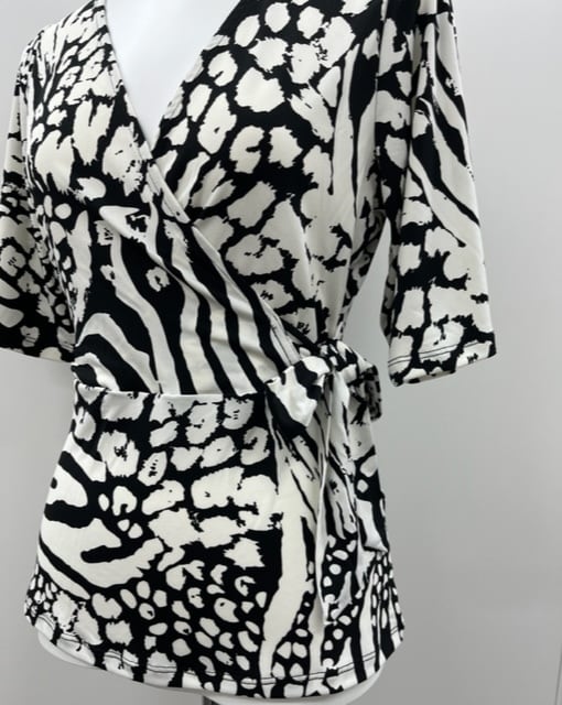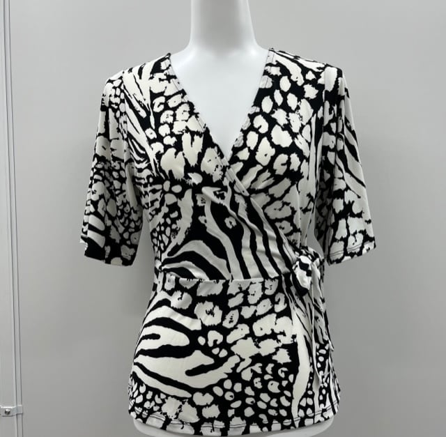 肌触りのいいモノトーンのプリントトップスです