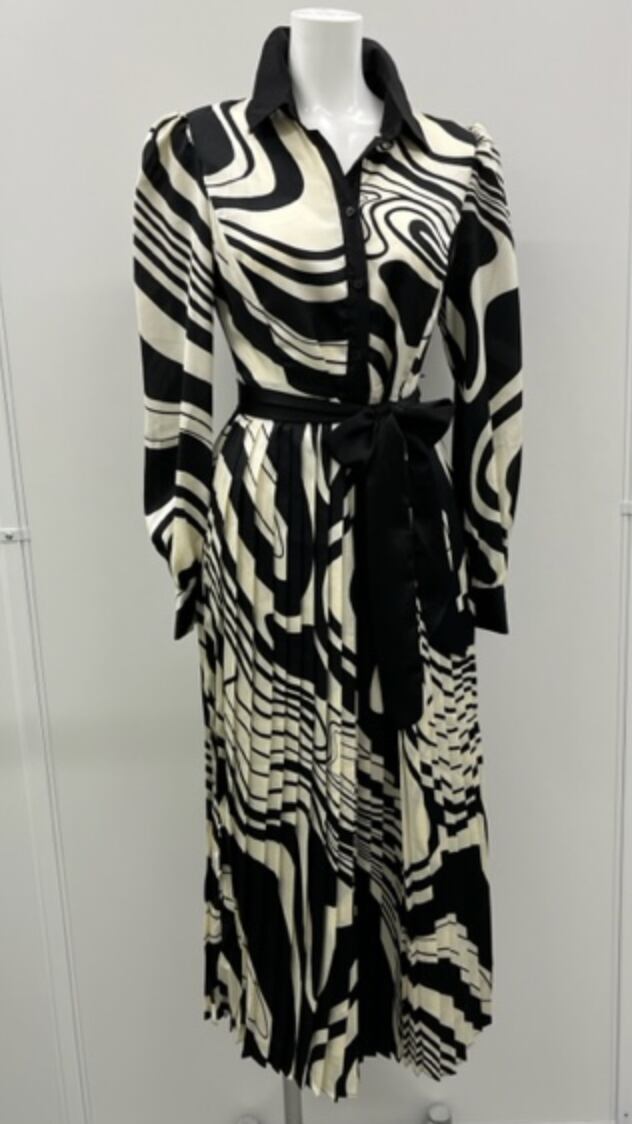 モノトーンワンピ★ブラックベルト付き!スカート部分はプリーツでスッキリ!
