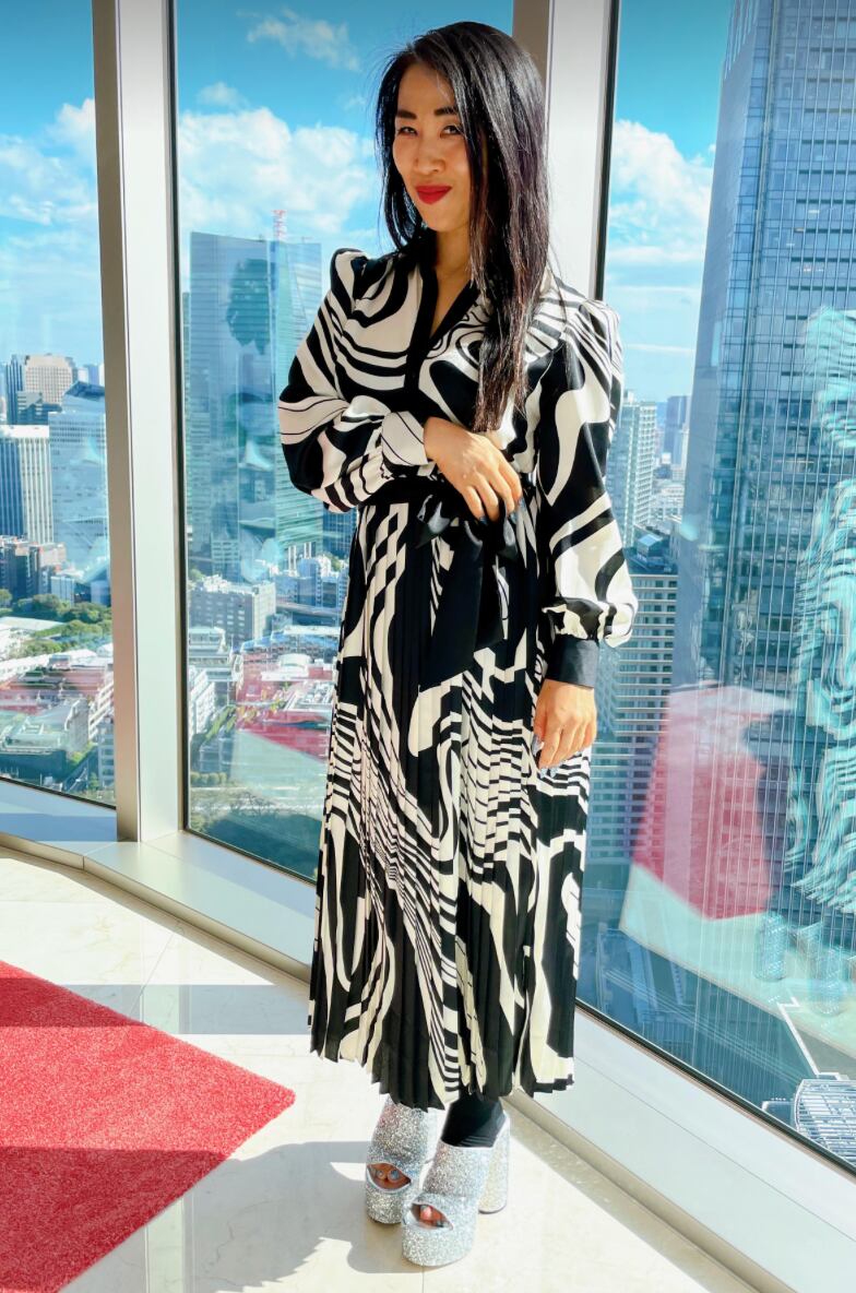 モノトーンプリントのワンピ