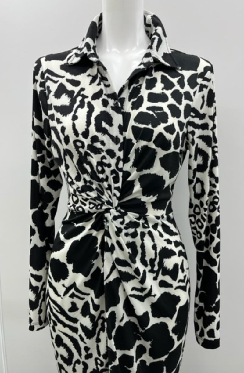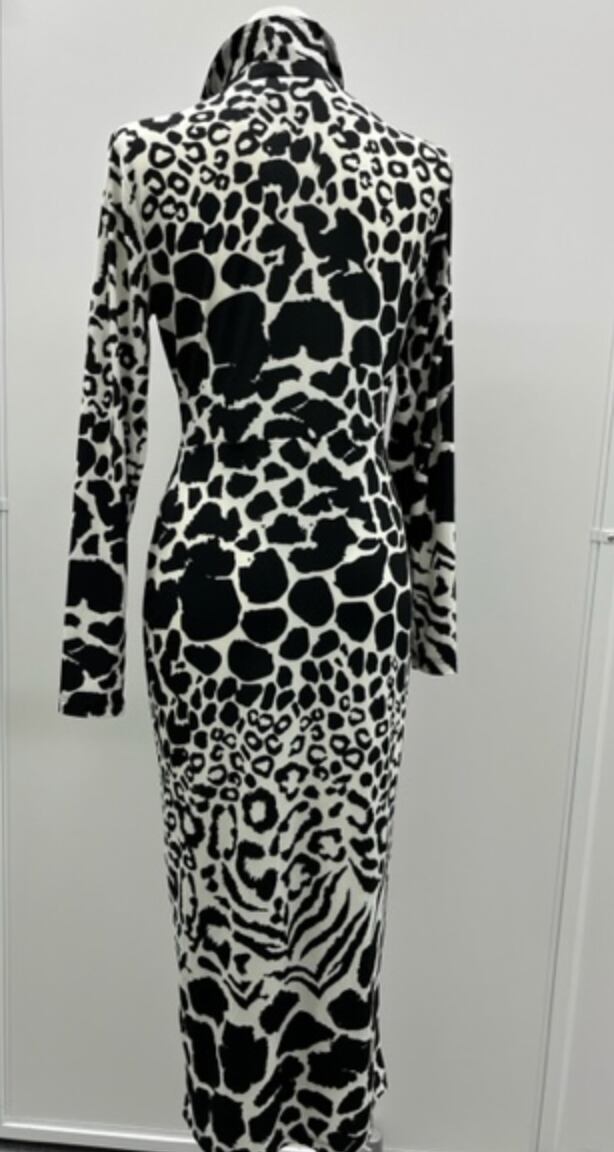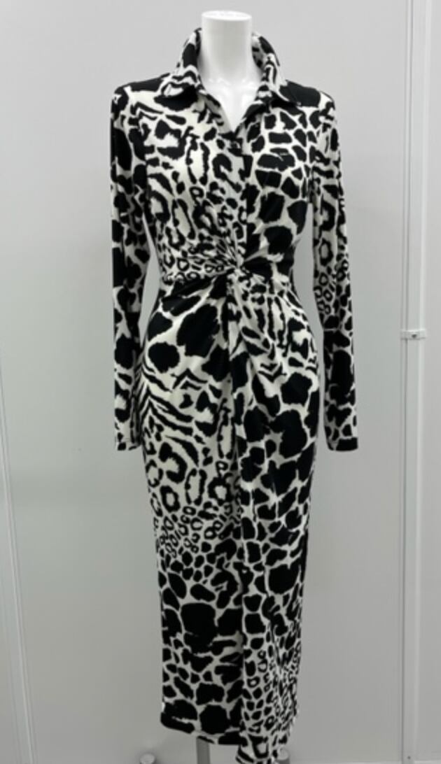 モノトーンヒョウ柄のワンピ