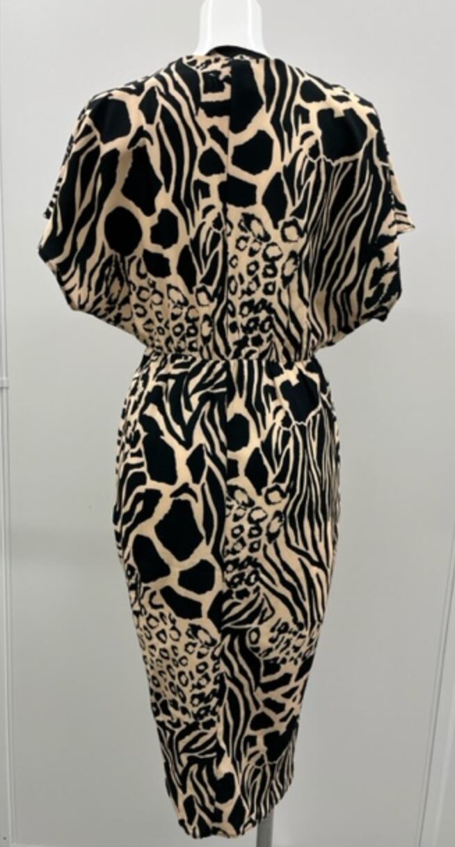 BLACK×BEIGEヒョウ柄★チューリップラインワンピ!女性らしいシルエット