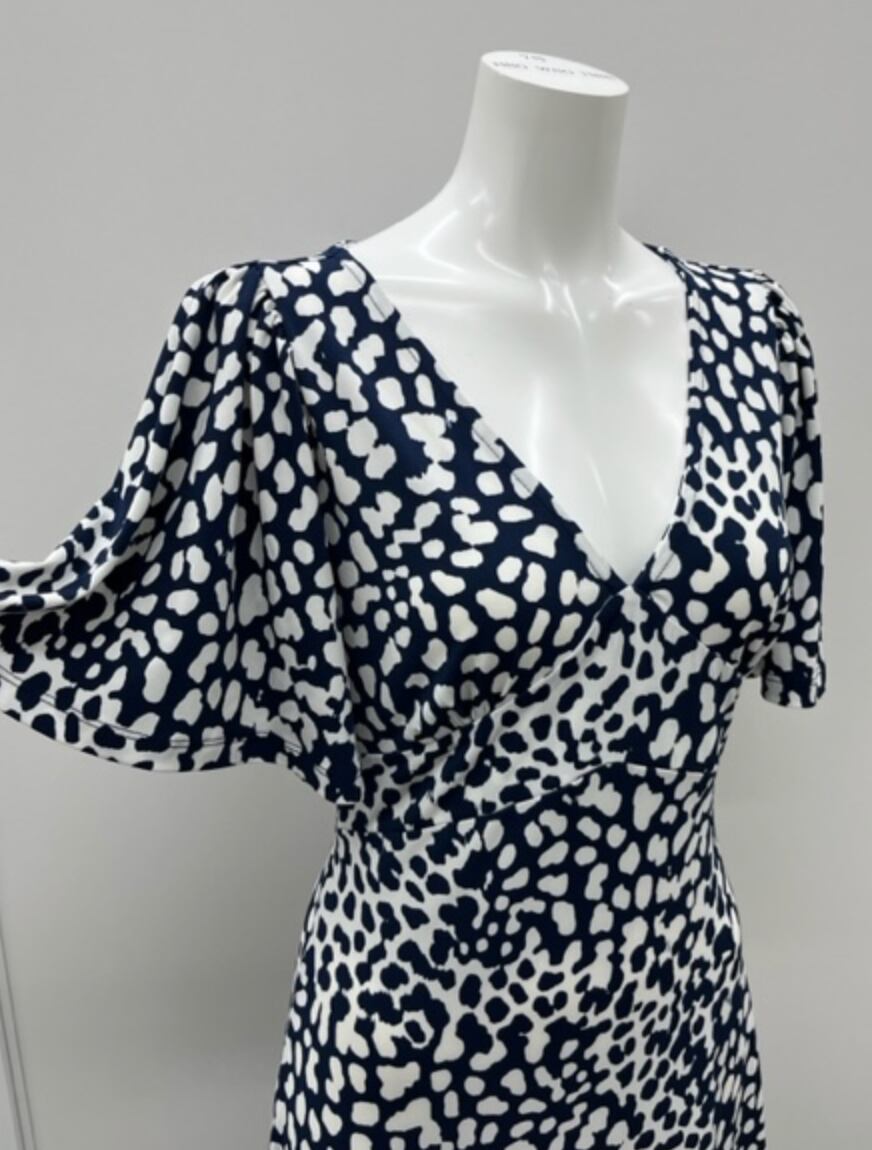 モノトーンのヒョウ柄のワンピ★ストレッチ!ジャージ素材!フレアスリーブ