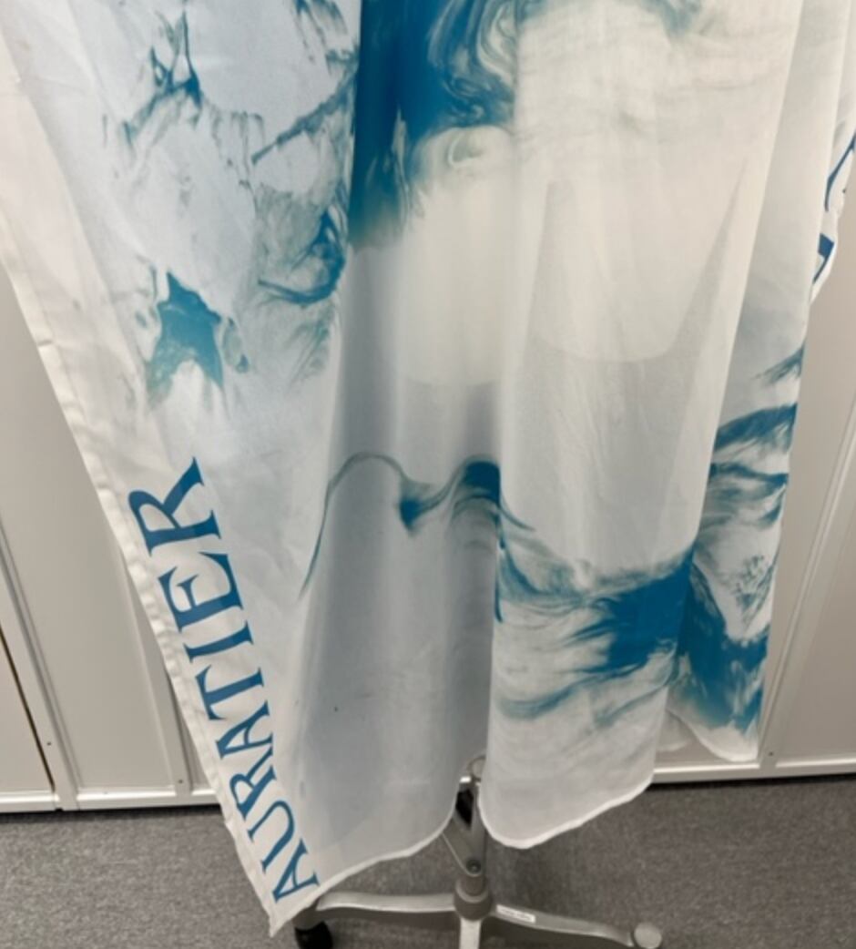 ターコイズBLUE★前プリントロゴ入り!ドラマチックドレス!