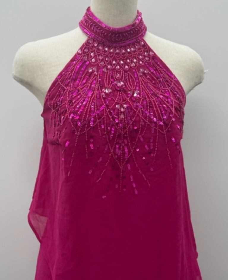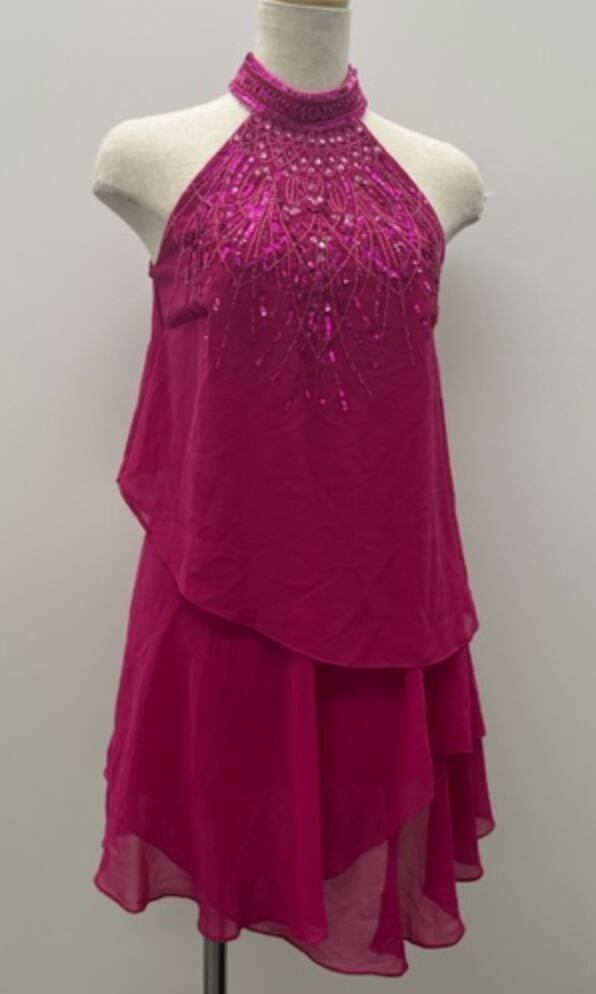 PINK首元にビジューが付いた華やかワンピ