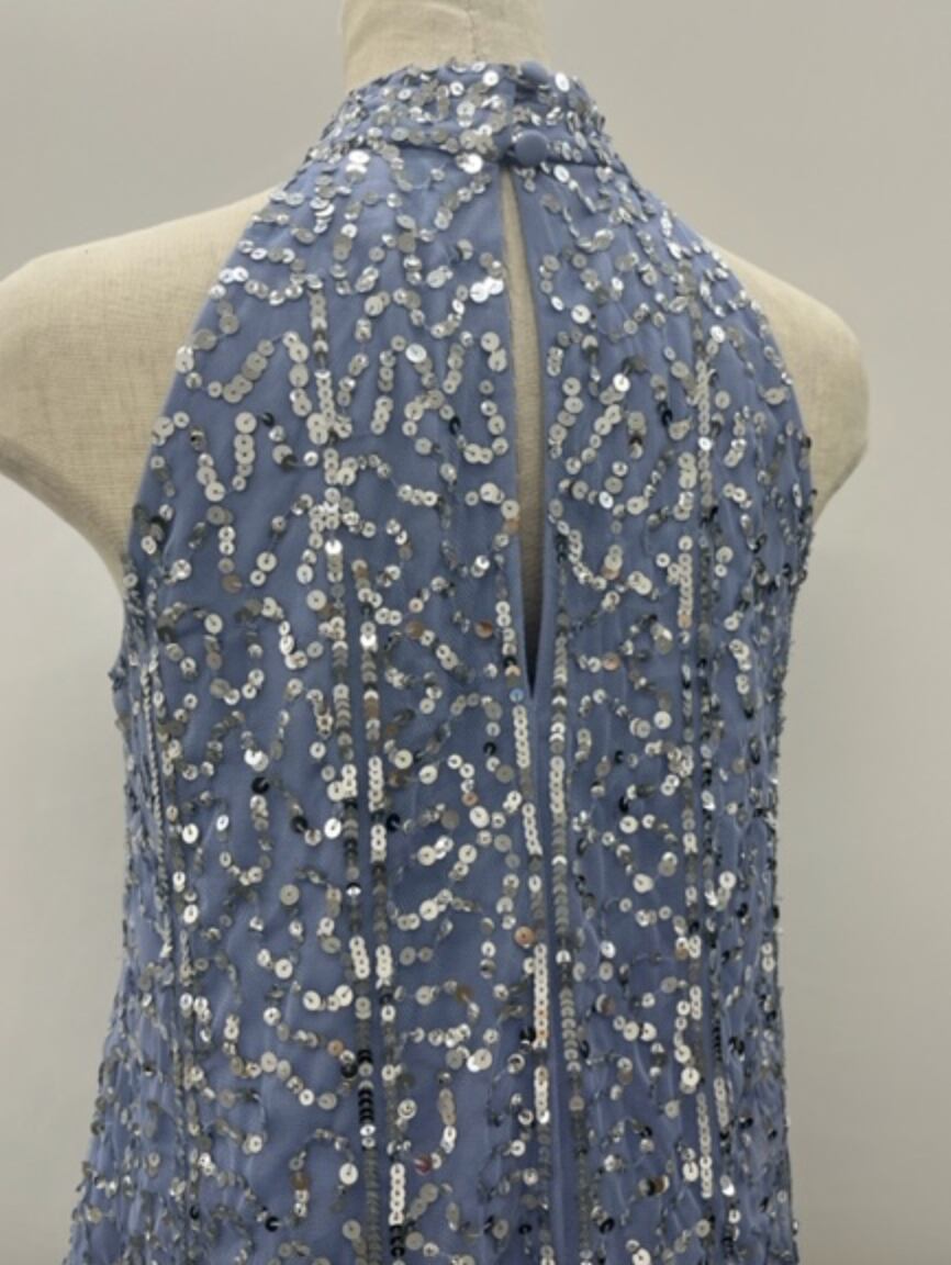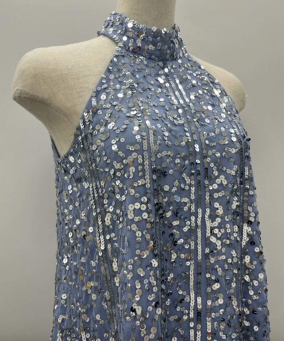 スパンコールで縦のラインが入っているのでスッキリした印象になります