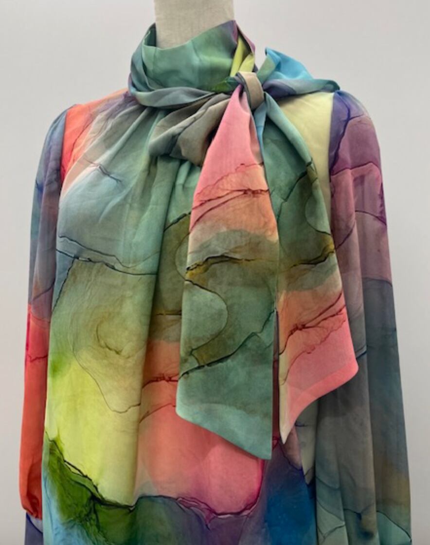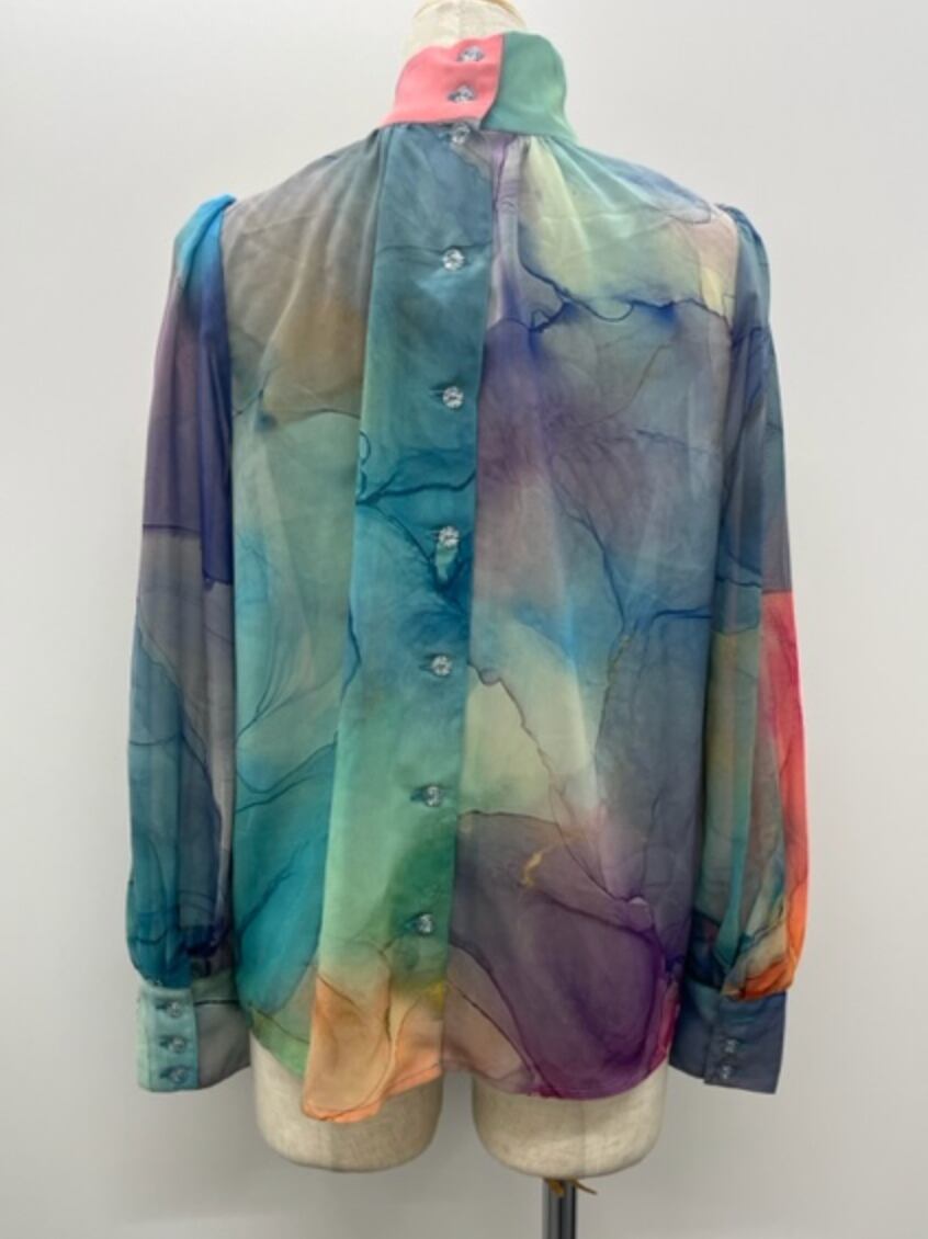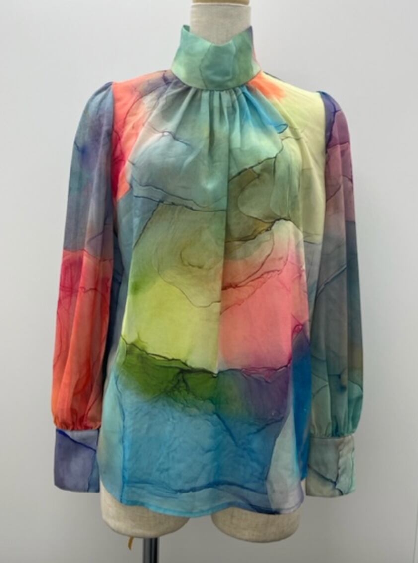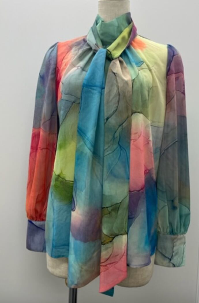 華やかブラウス★水彩画プリント!アレンジ可能ボータイ!