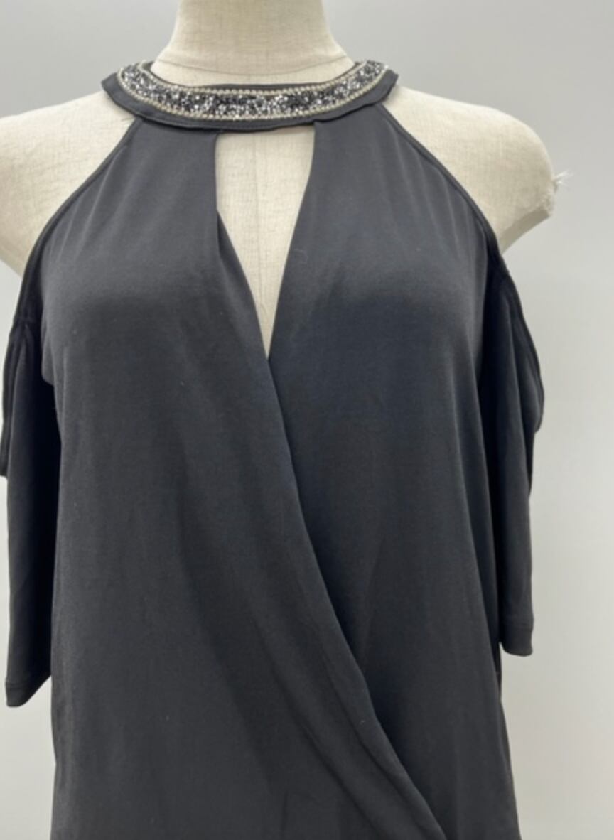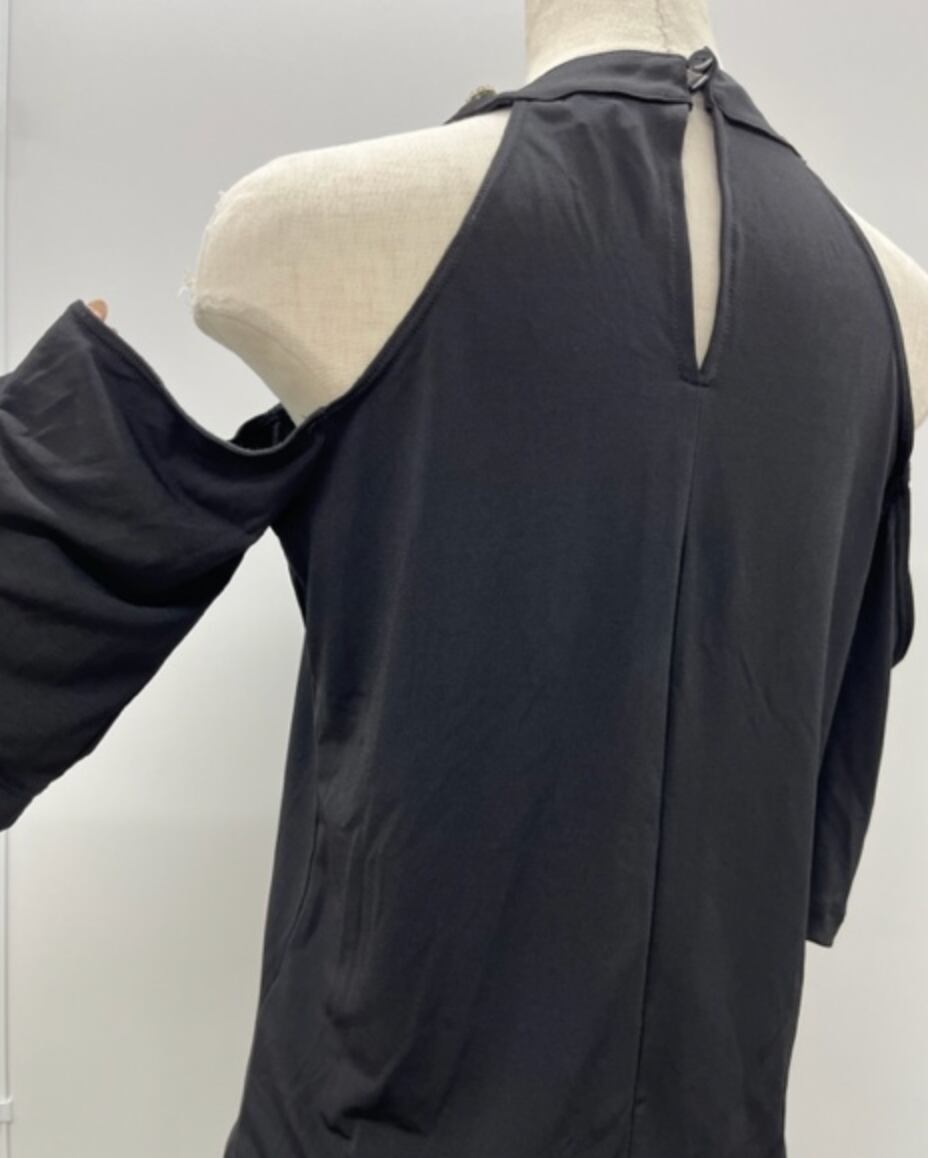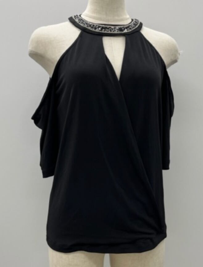 BLACK★アメリカンスリーブ!Vネックカットソー!ビジューストラップ