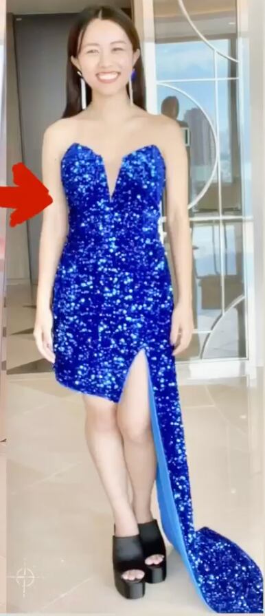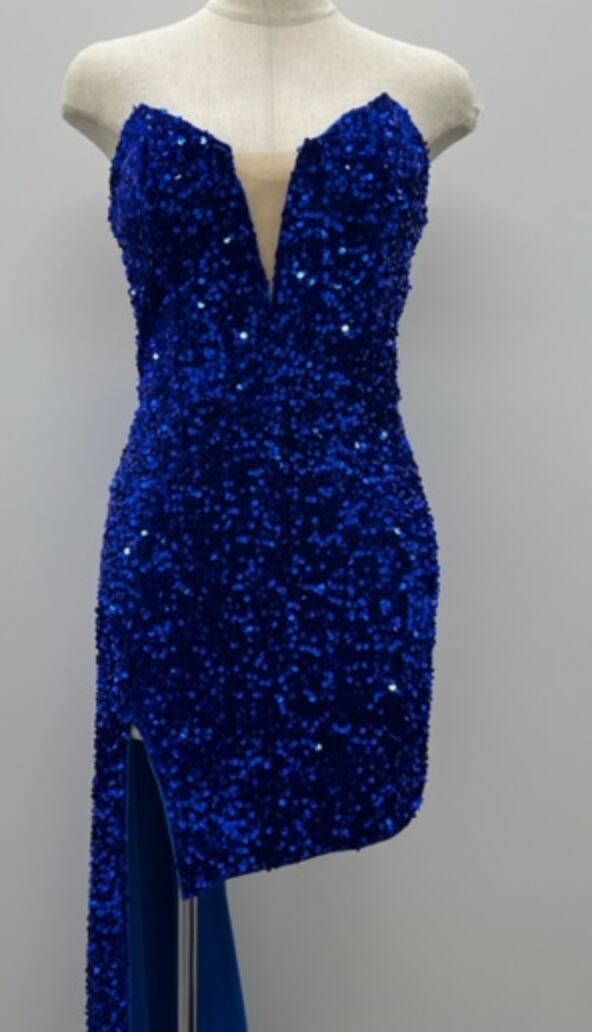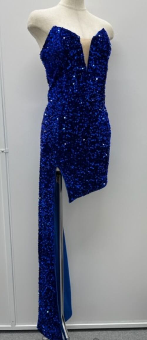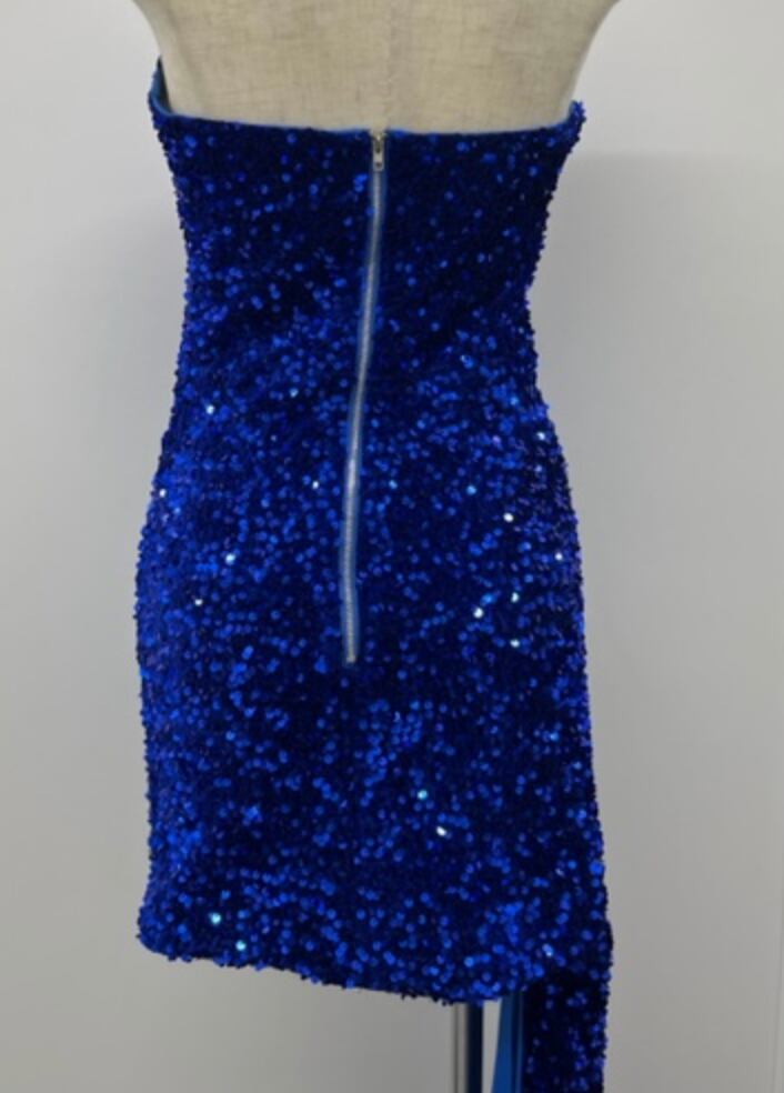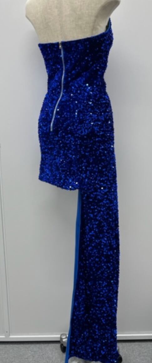 鮮やかBLUE★スパンコールドレス!ベアトップ!トレーン