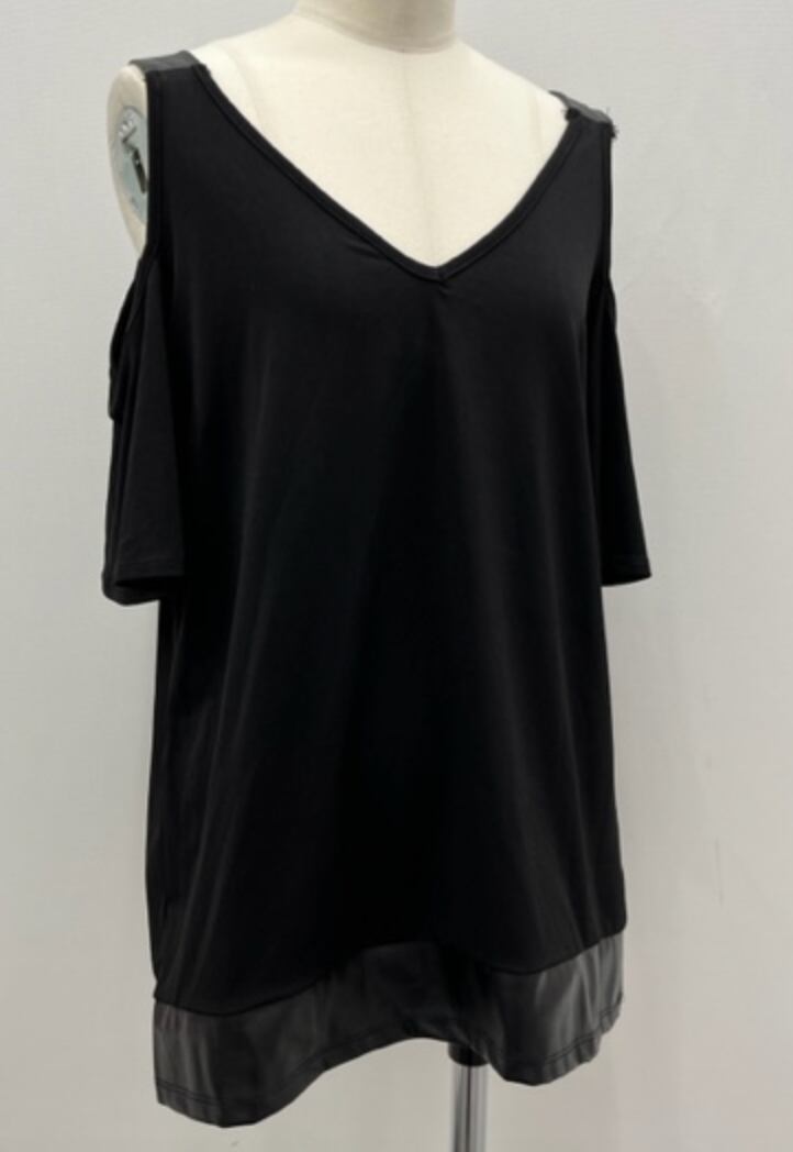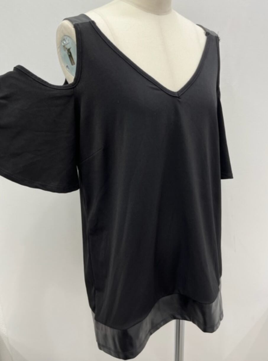 BLACKカットソー★エコレザー使い!オフショルダー!
