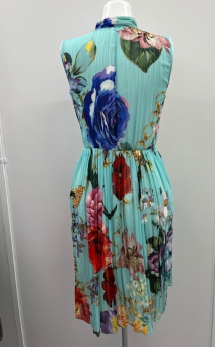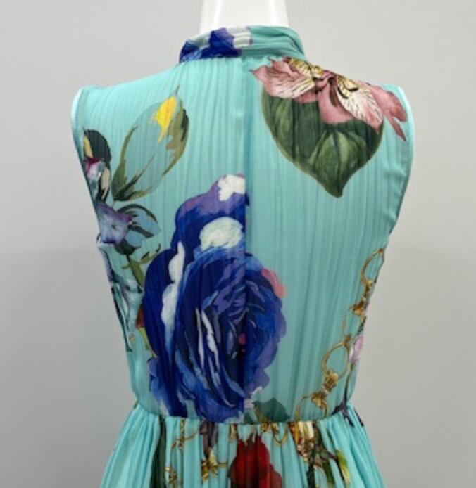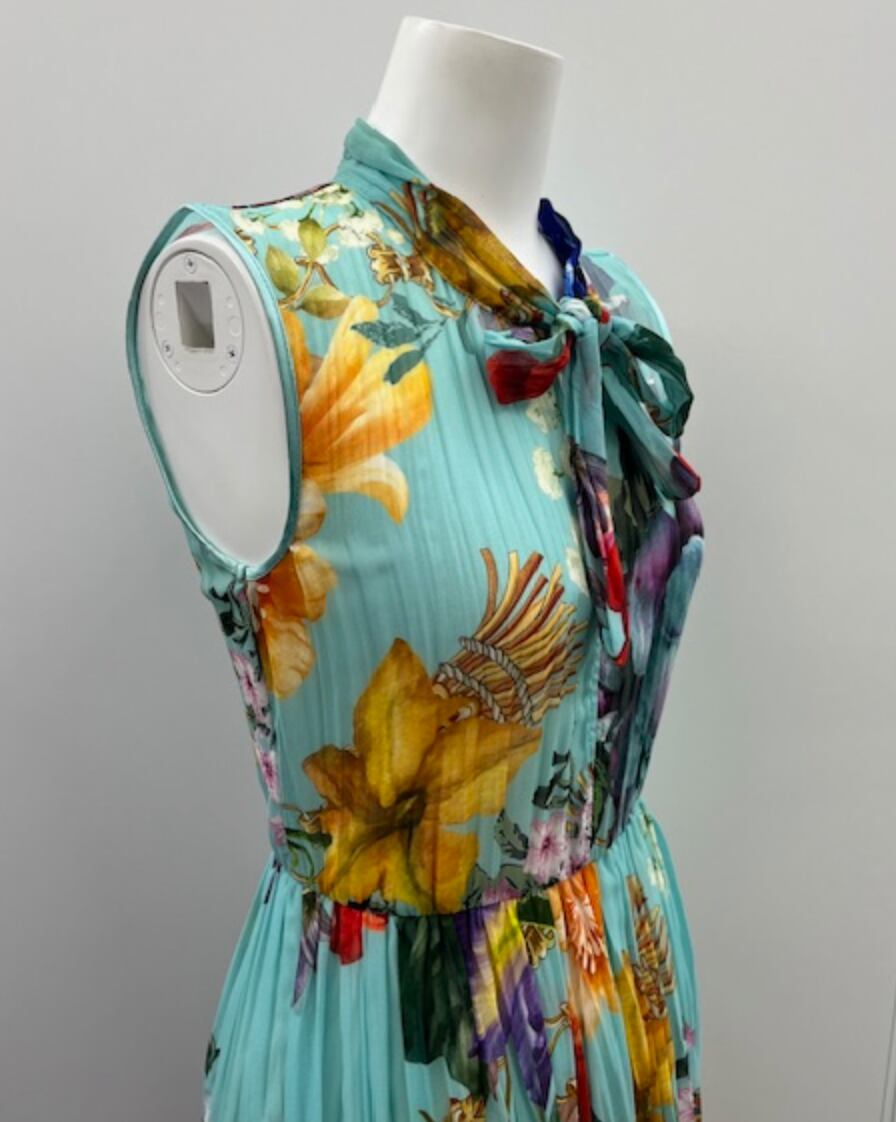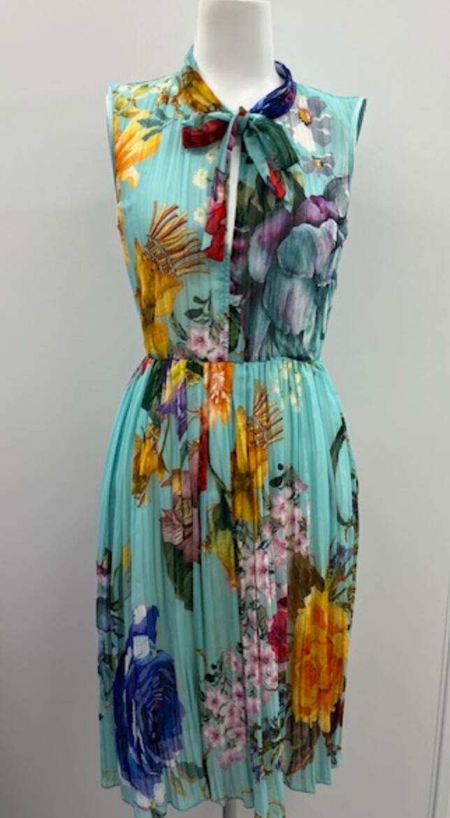 プリーツ素材が体のラインを美しく見せてくれるデザインです