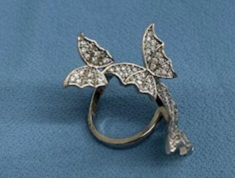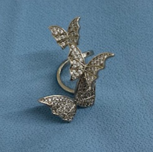 シルバーベースにキラキラのスワロが散りばめられた蝶のリングです