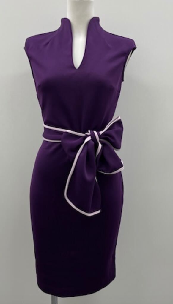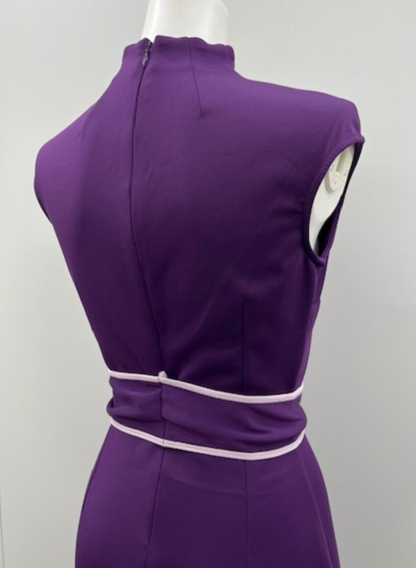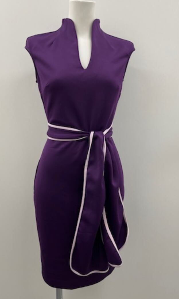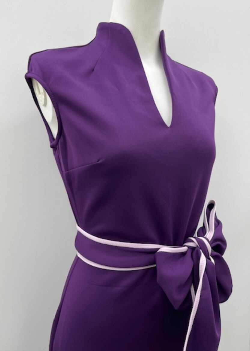 パープル★ストレッチ!チャイナドレス風ドレス!WHITEトリミングベルト付き!