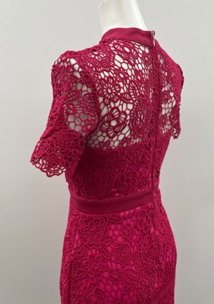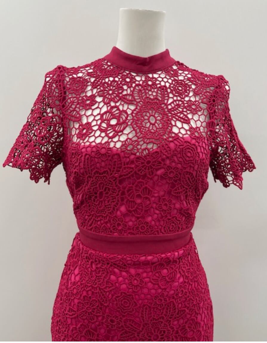 フューシャPINK★カットワークレース!ハイネックドレス!
