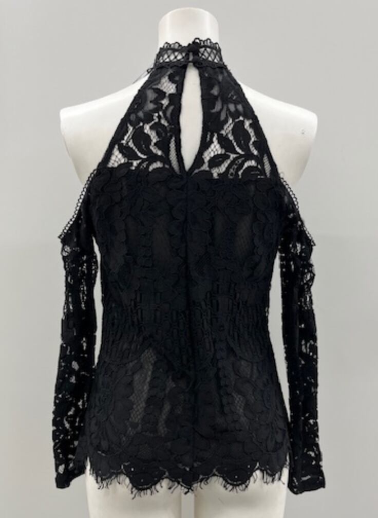 BLACK★総カットワークレース!オフショルダー!アメリカンスリーブブラウス!