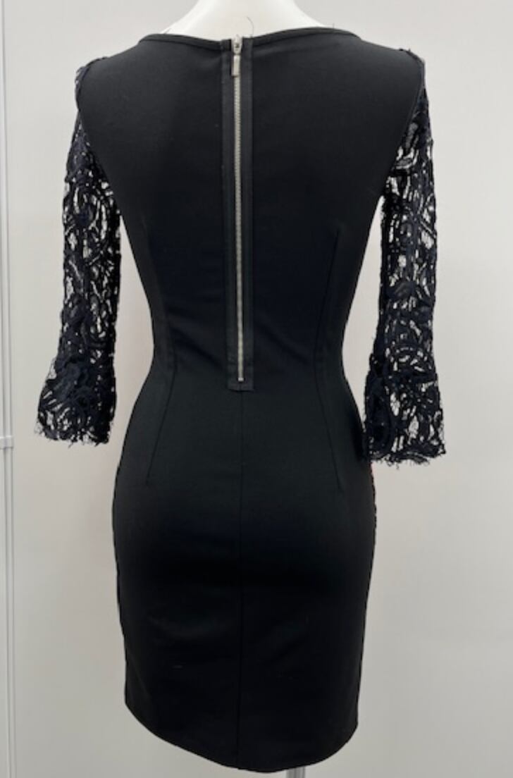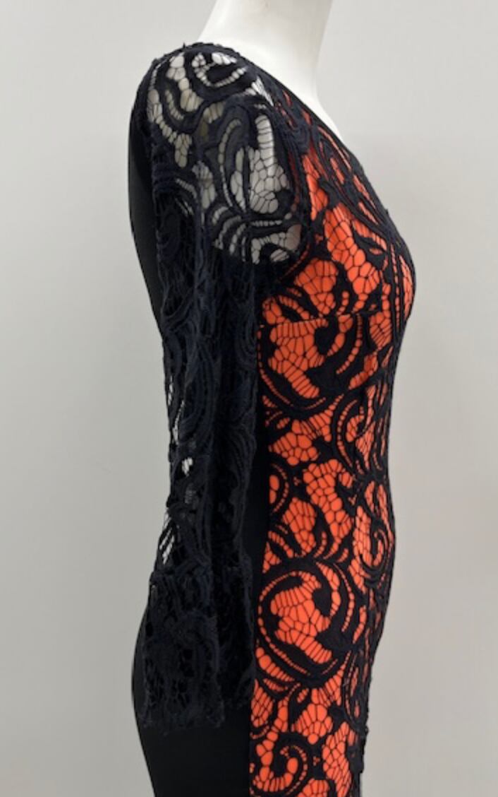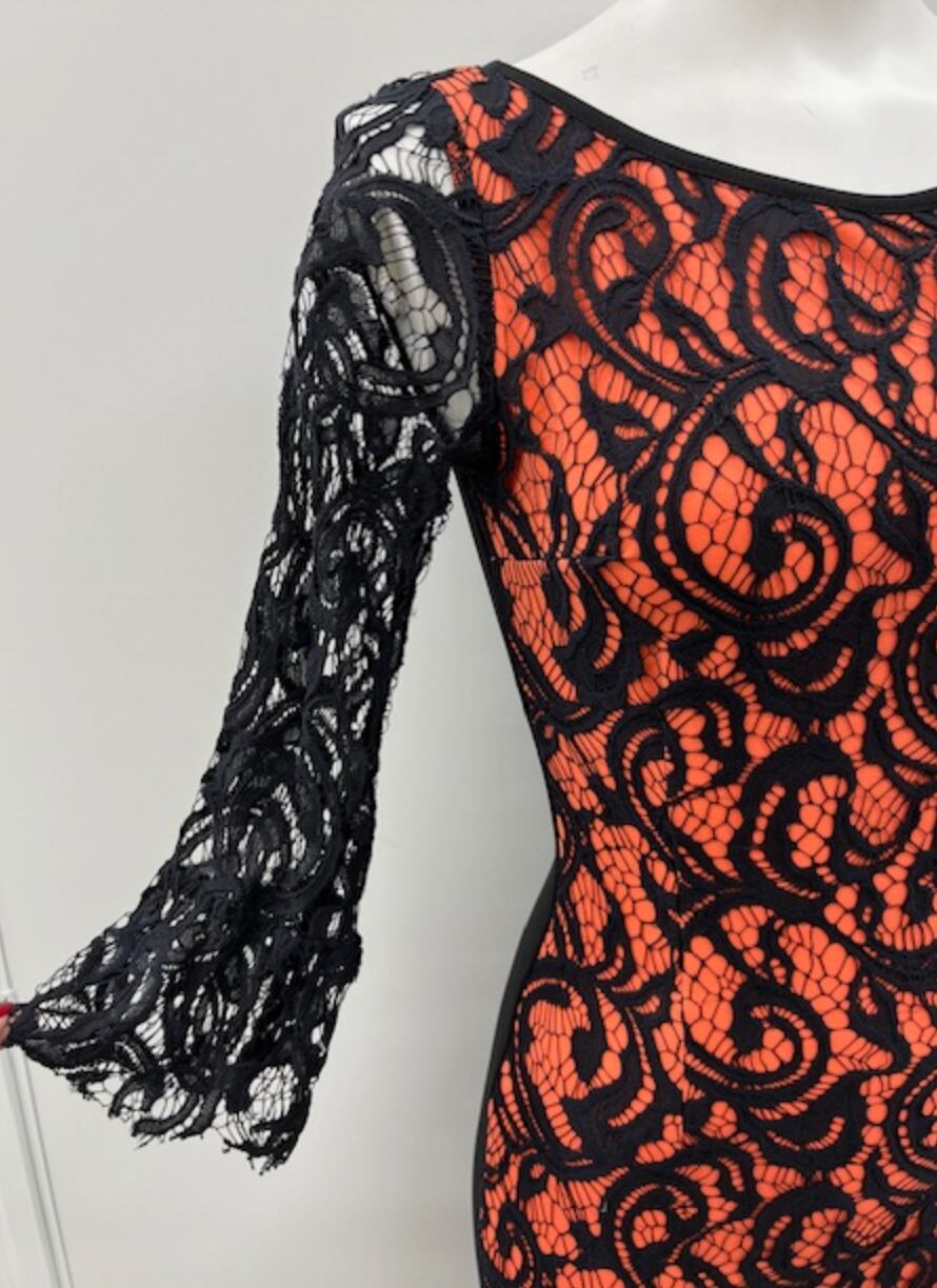 BLACK×ORANGE★前身頃!袖レースワンピース!七分袖!ボディーコンシャス!
