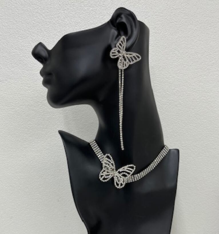 蝶ピアス(片耳)×蝶ネックレス★SILVER!ラインストーン!