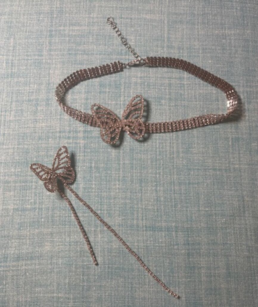 蝶のピアスとネックレスのセットです