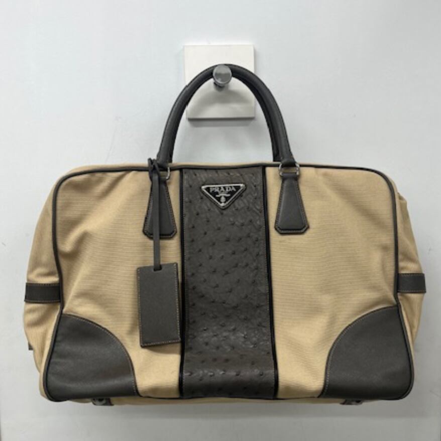 お買得★弥生さんのビジネスを支えたお守りバック★PRADA★キャンバス×オーストリッチ!ボストンバック!旅のシーズンに!