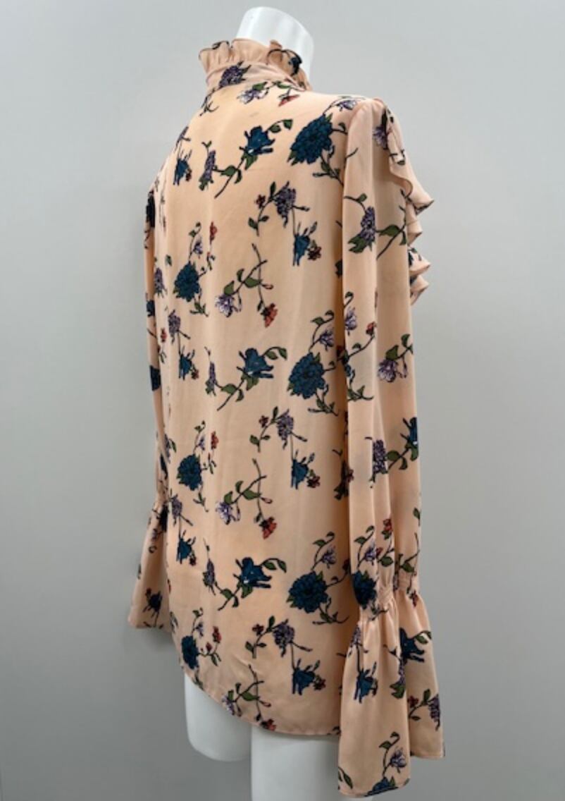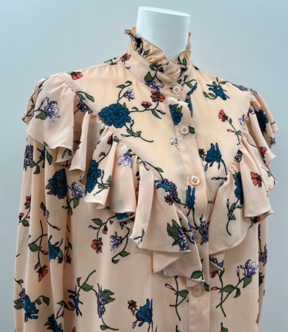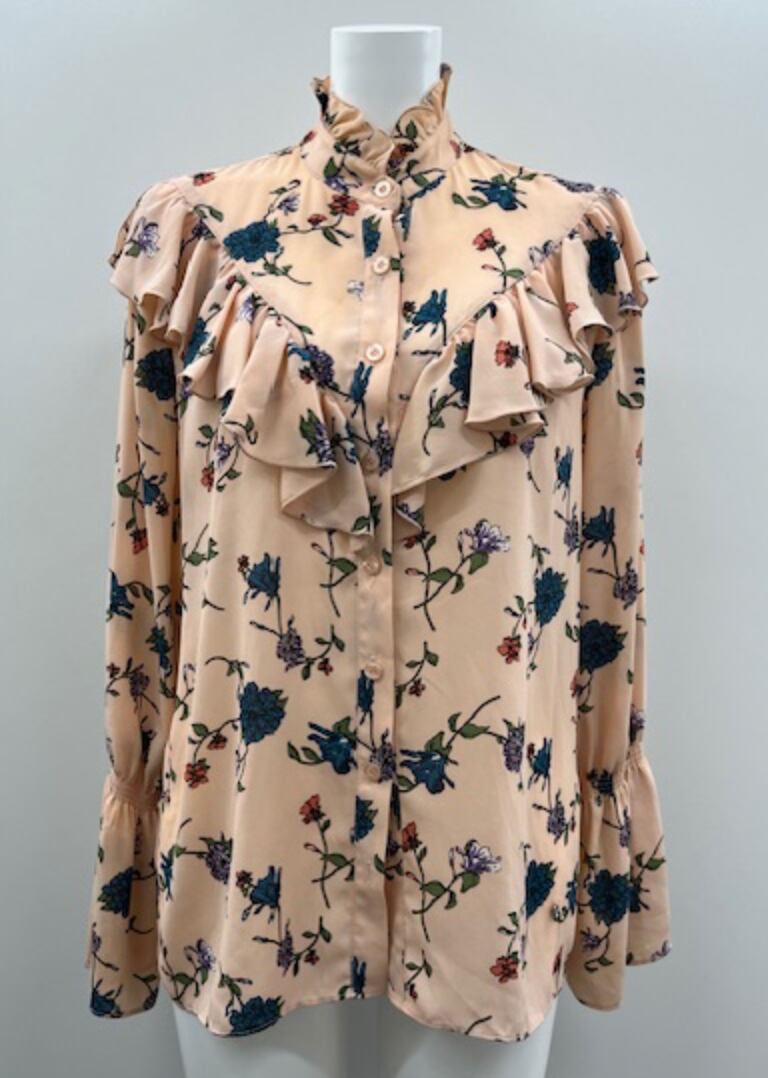 フラワープリントにフリル使いのフェミニンで華やかなブラウスです