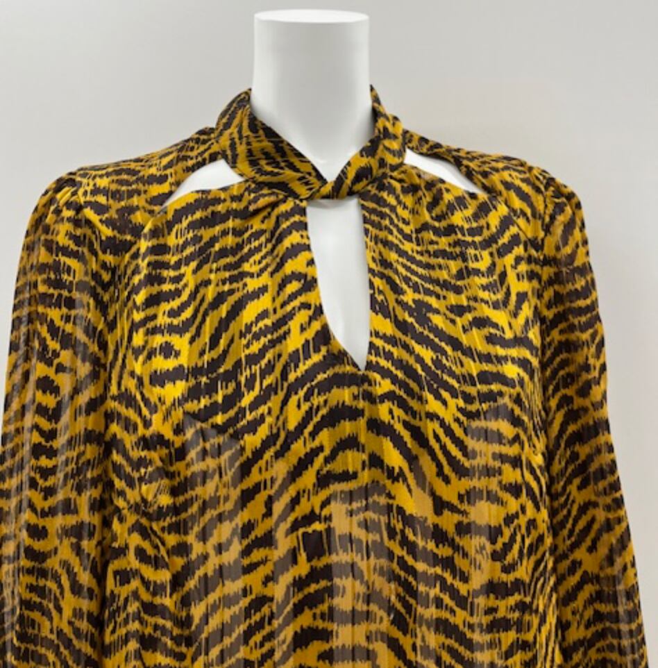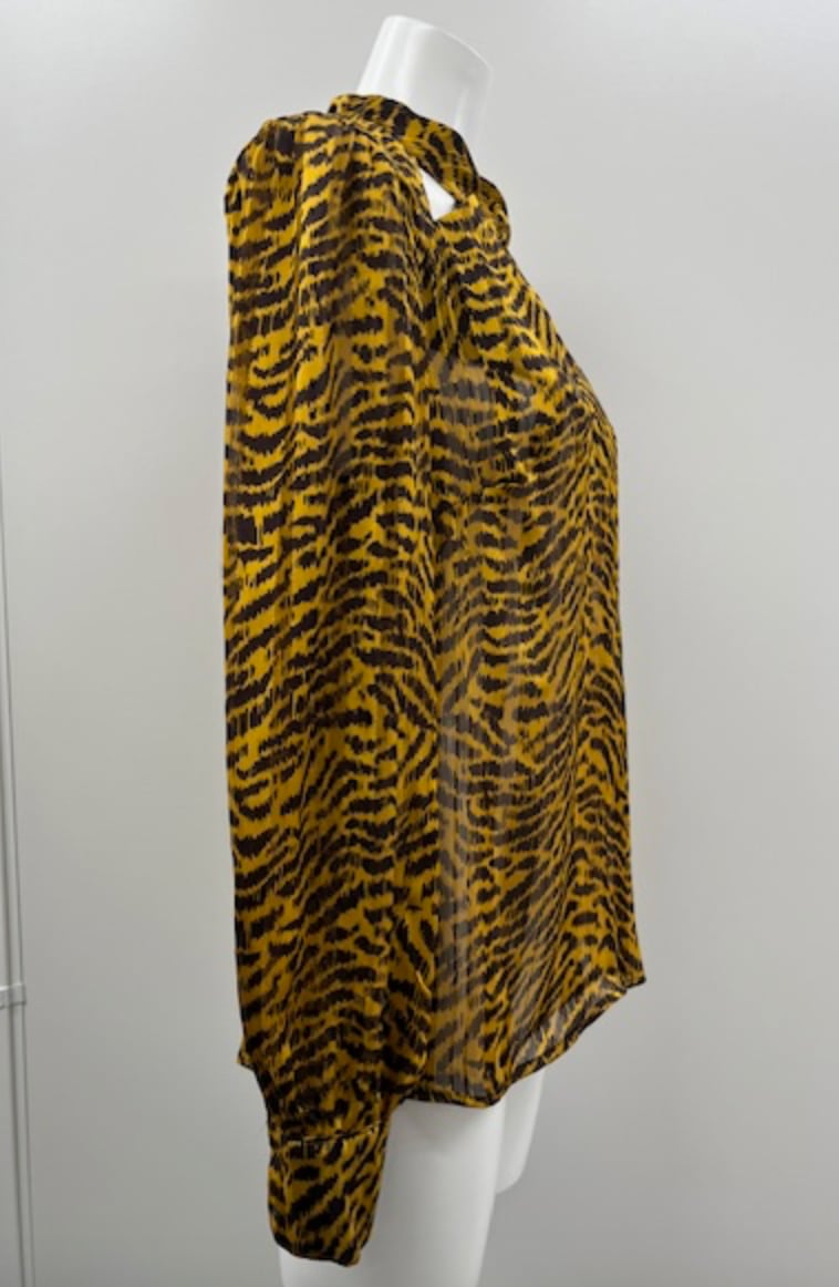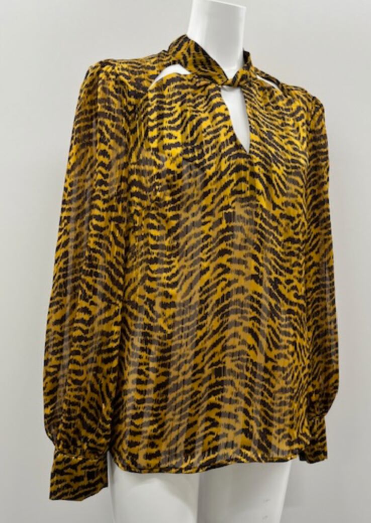 ヒョウ柄の胸元のデザインがとっても華やかなブラウスです