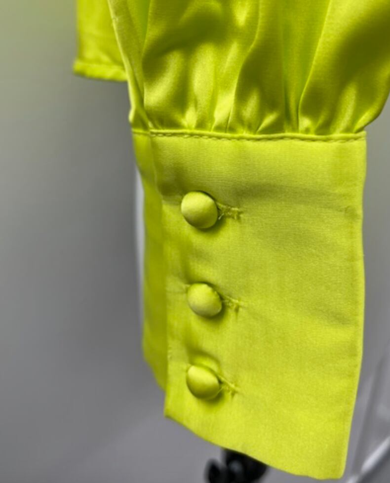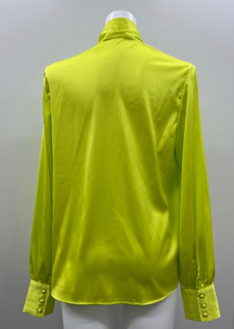 発色の良いライムGREENの華やかなブラウスです