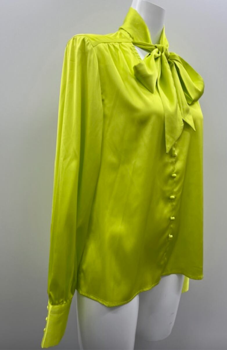 ライムグリーン★華やかボータイ!ブラウス!