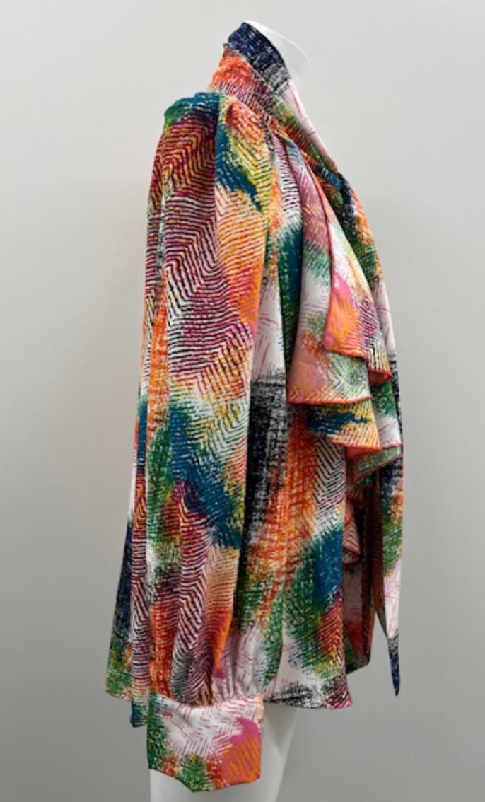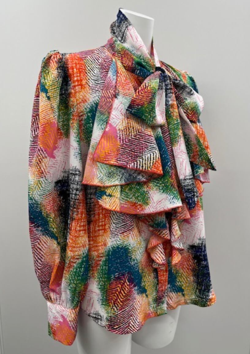 マルチカラー★華やかなグラフィカルプリント!ボータイブラウス!