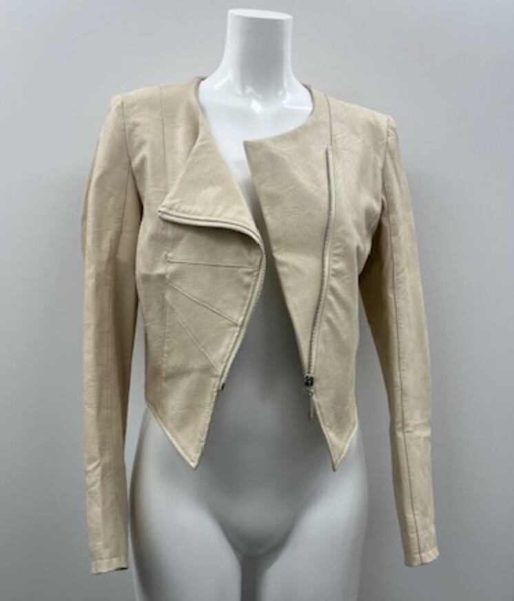 ノーカラージャケット★アイボリー!エコレザー!これからの季節の羽織に!