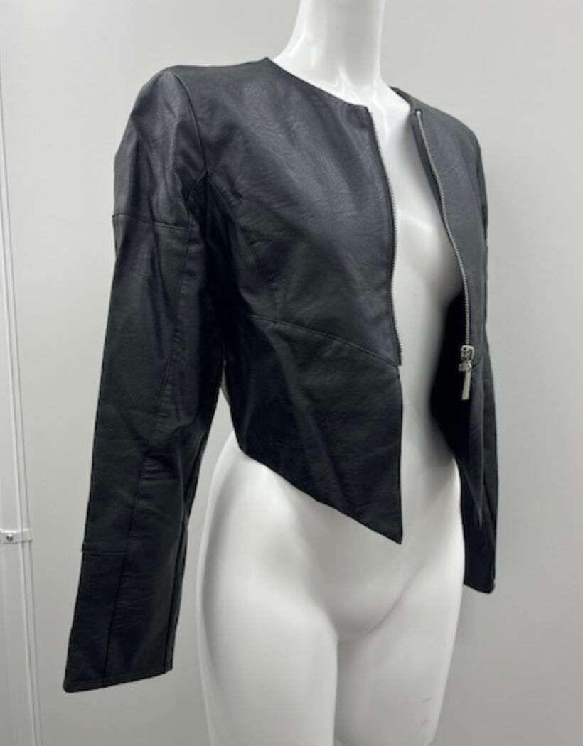 ノーカラージャケット★BLACK!エコレザー!これからの季節の羽織に!