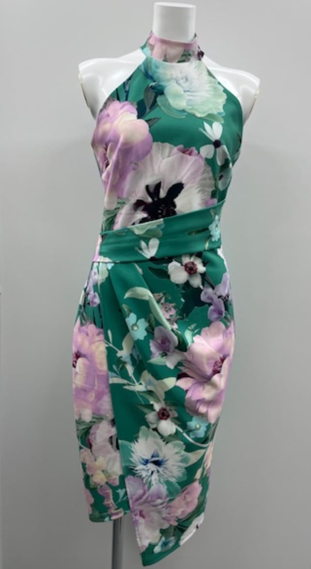 GREEN!フラワーワンピ★アメリカンスリーブ!ドレープ!
