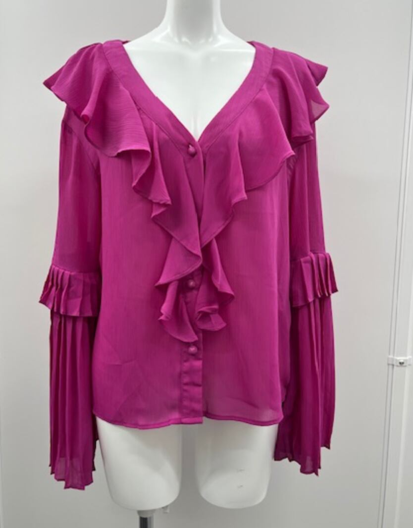 PINKフリル!ブラウス★Vネック!袖プリーツ!
