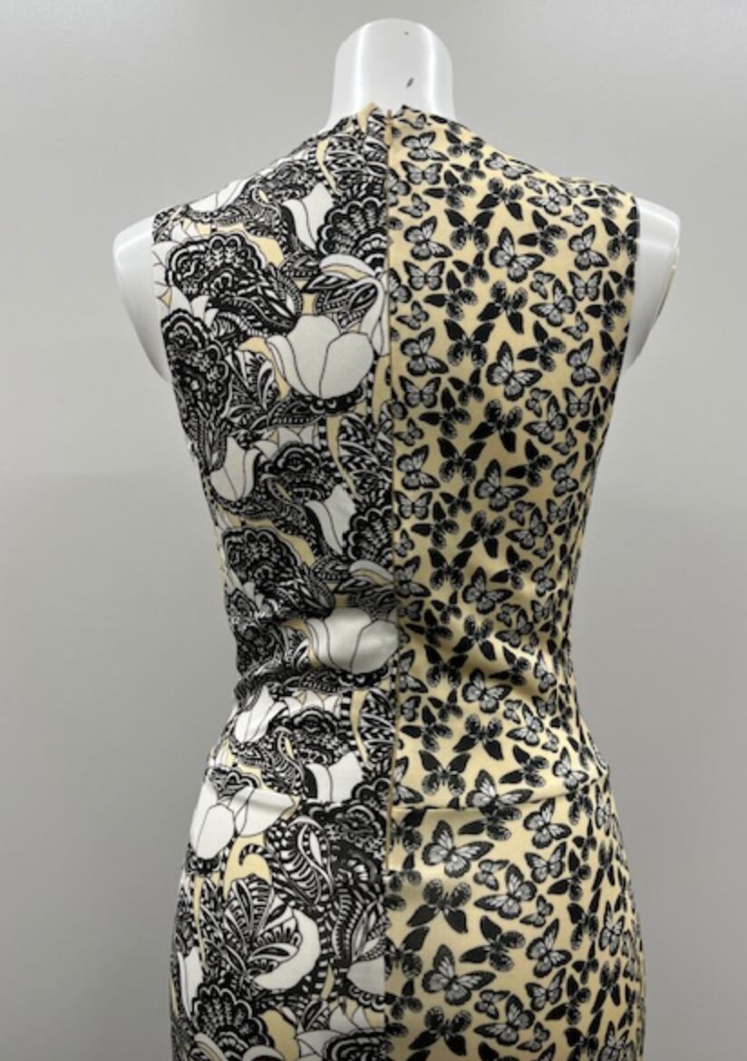 BLACK×BEIGEのボタニカル×蝶柄のワンピ