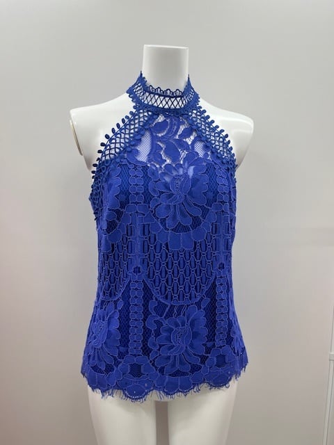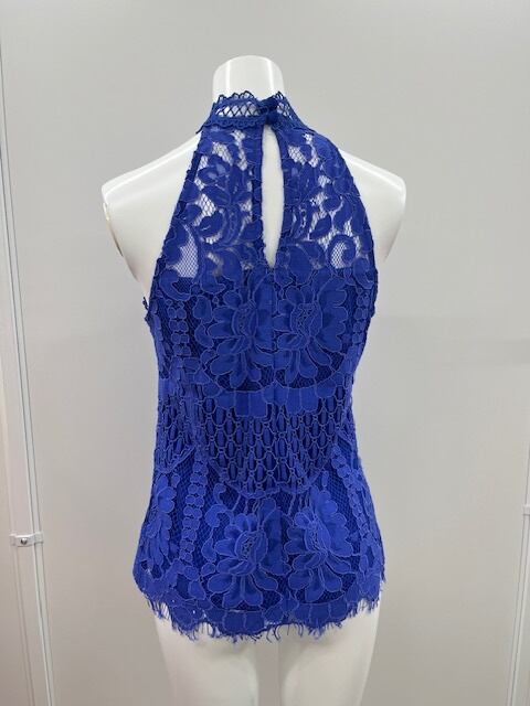 とっても鮮やかで発色のいいブルーのレースブラウス!