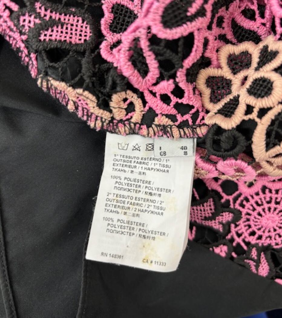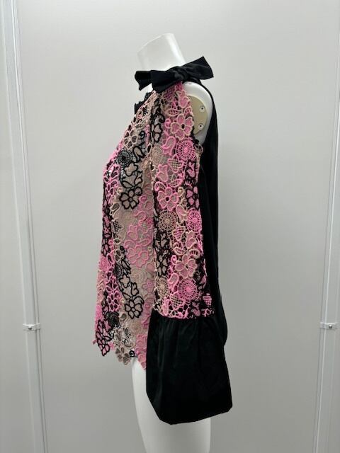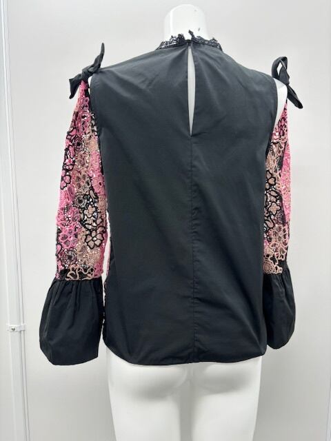 華やかなでキュートな、BLACK×PINKのレースのブラウスです